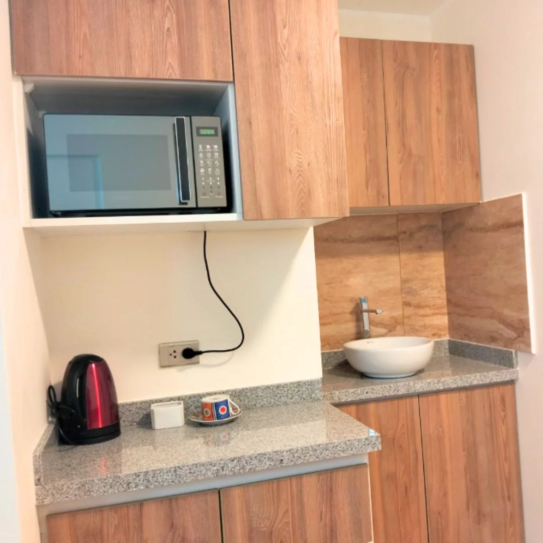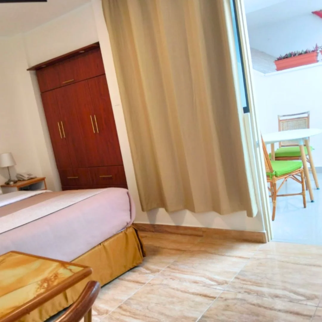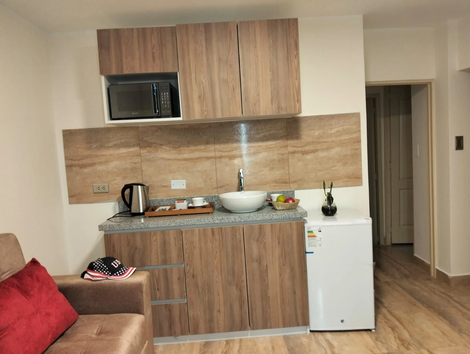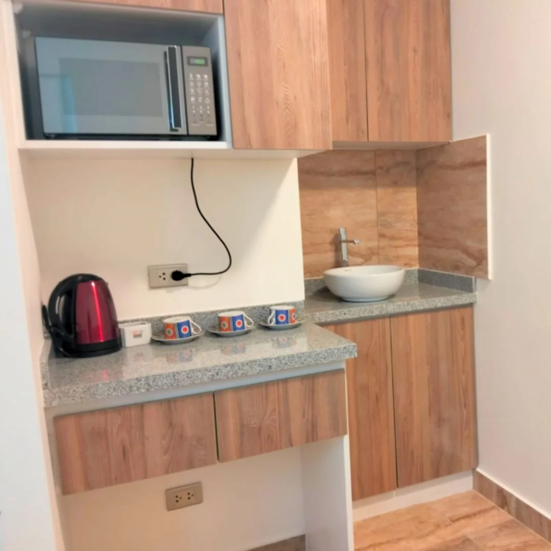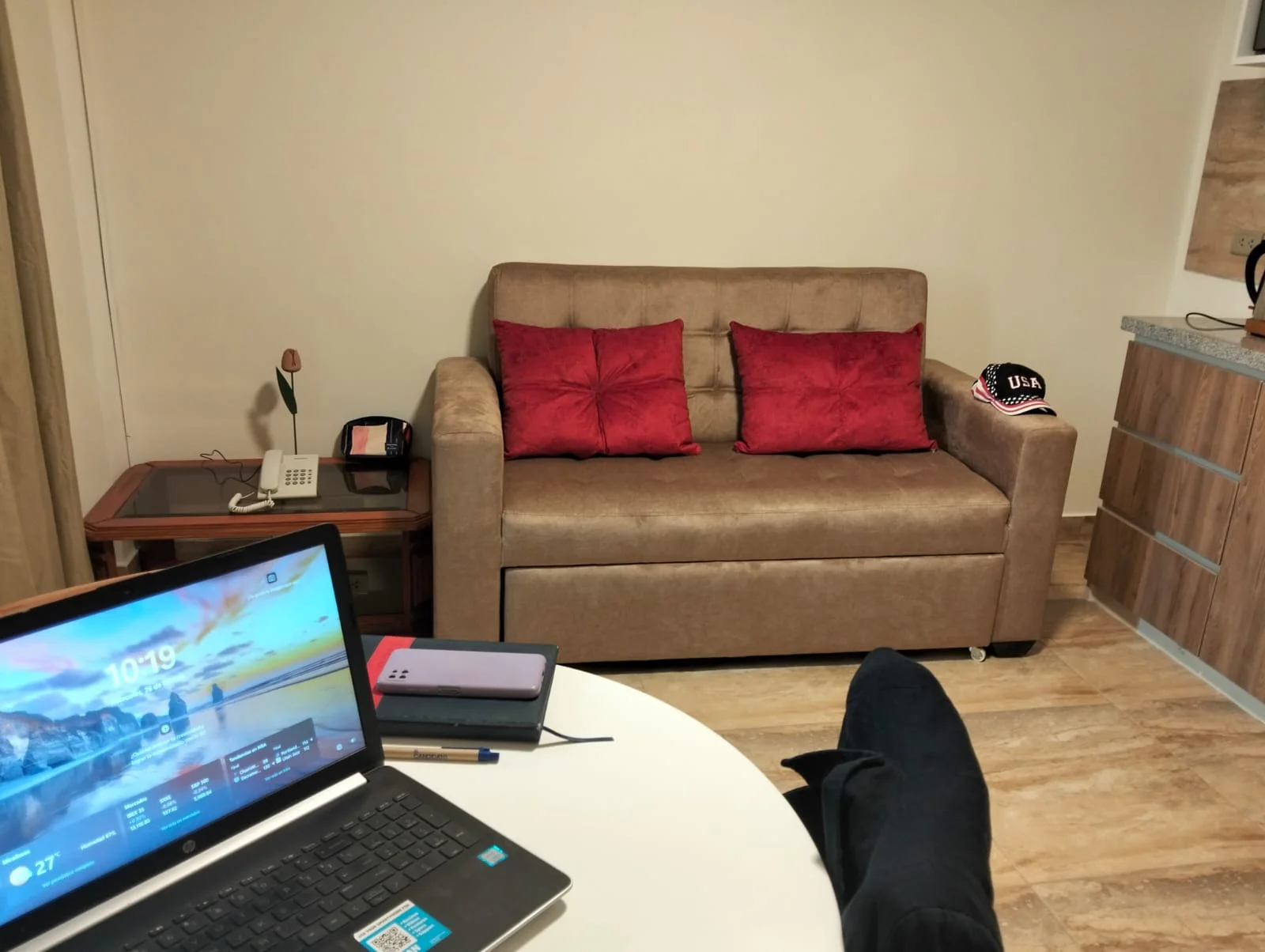 与 2床2人, 1张大床+1号广场,1½起居室的小厨房家具、酒吧、家庭用品的迷你酒吧、微波炉烧水壶;结合的舒适性和实用性在一个现代化的环境和欢迎,理想的 家庭,朋友,或企业管理人员 有同伴 在寻找住宿多米拉弗洛雷斯,利马。